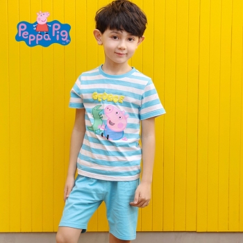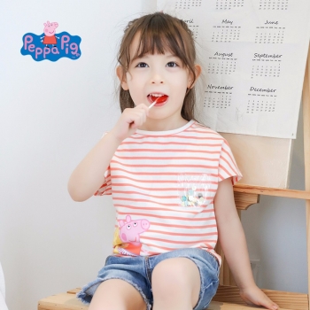- PeepaPig小猪佩奇 童装女童夏装短袖T恤条纹时尚t恤 小猪佩奇条纹短袖