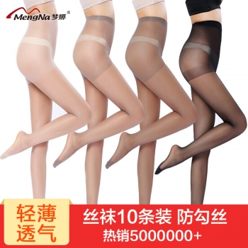 - 梦娜10双装 丝袜女式连裤袜薄款透肉防勾丝显瘦黑裤袜 女士春夏季性感肉色丝袜打底裤袜